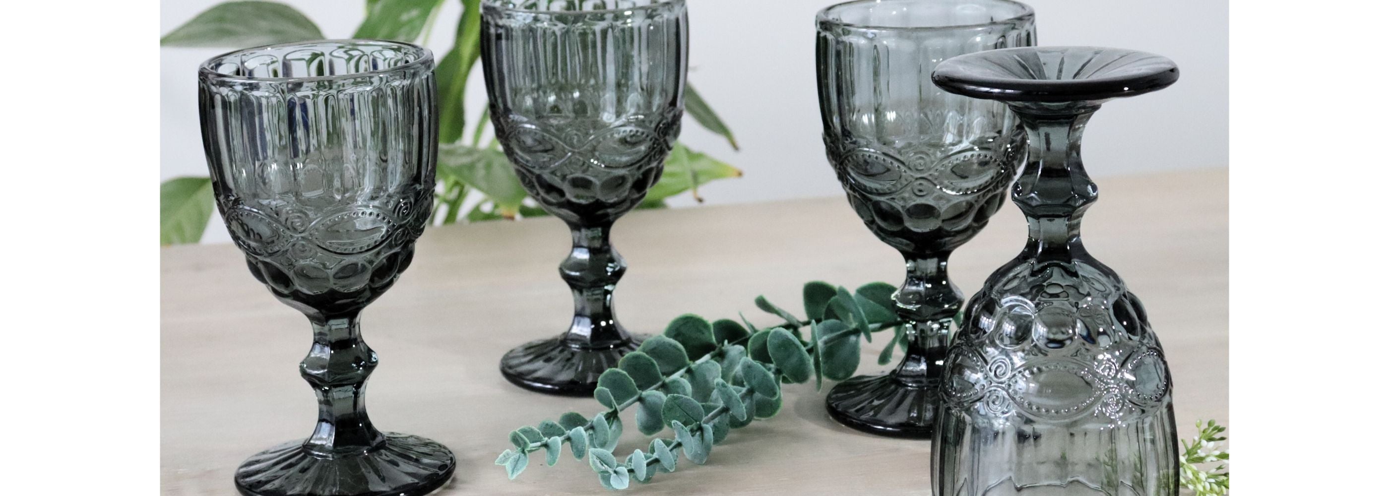 Green Wine Goblet Embossed Glass