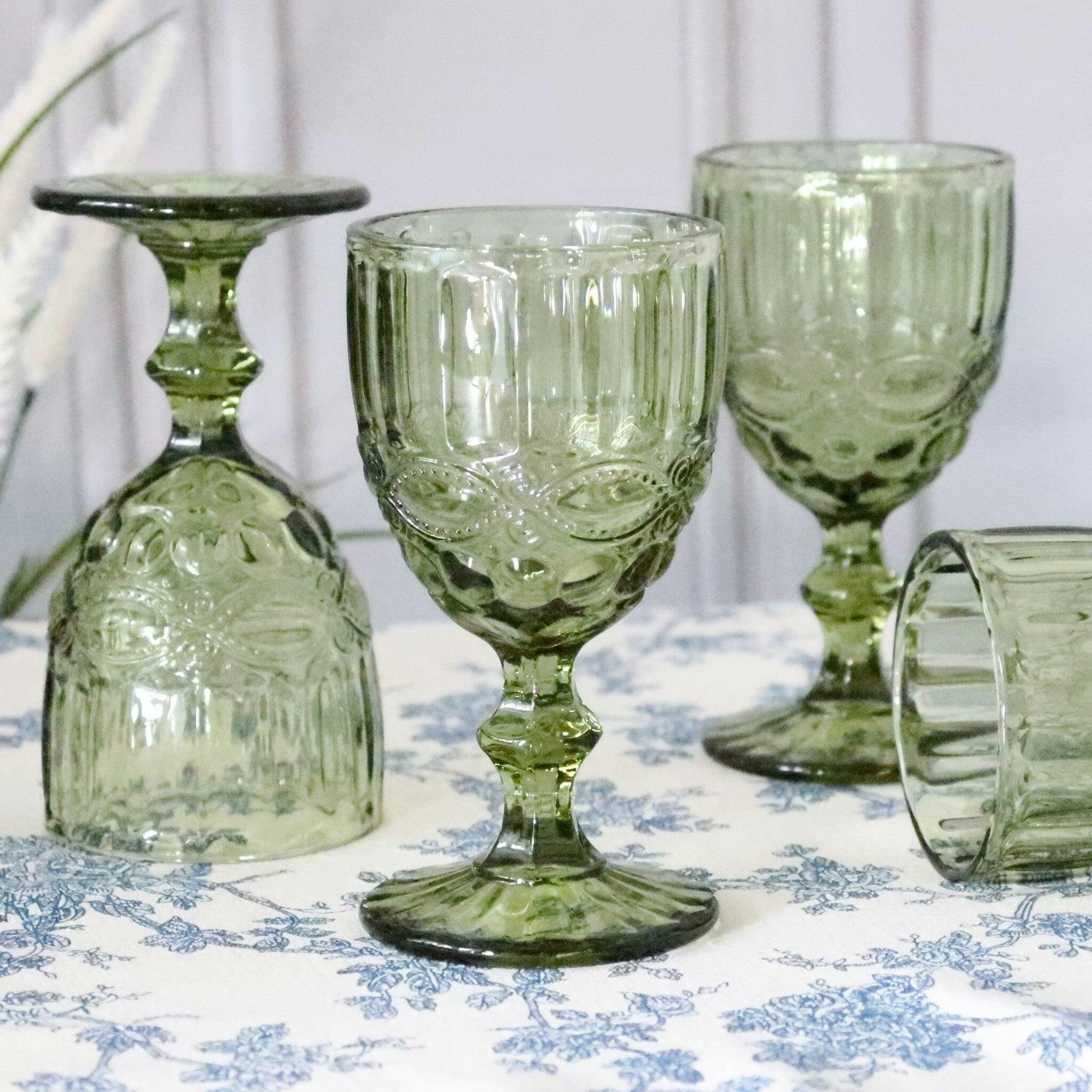 These green vintage wine glass goblets blend timeless design with modern flair. The transparent embossed pattern create a statement on any table — whether you’re hosting guests or simply elevating your everyday dining. Durable, elegant, and irresistibly eye-catching.
